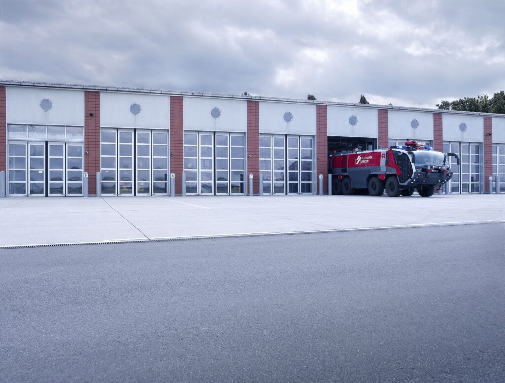 The EFA-SFT features a remarkable blend of robustness and reliability, qualities that hold true for utility vehicles as well. The high opening speed of these doors helps save valuable time in the event of an emergency. Furthermore, these doors are an integral aspect of modern industrial architecture, as they perfectly combine functionality and aesthetic appeal.