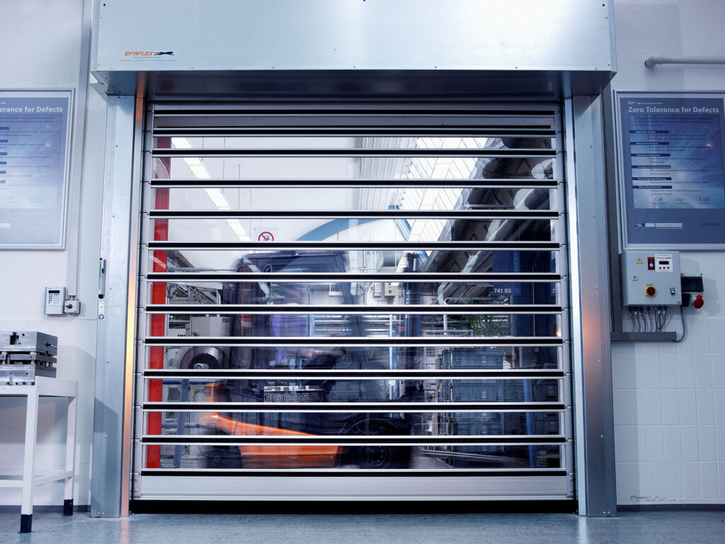 High speed warehouse doors are just as the name states, mighty fast. Our EFAFLEX MTL doors can open at speeds of up to 1.5 meters a second and so provide safe secure access and security quickly. Even better the S Series High Speed Spiral Doors achieve peak speeds of up to 4 meters a second! This means our rapid roller doors are efficient when thinking of the demands of a fast paced logistics business and the needs to move things into and out of a warehouse with a minimum of time wasted.