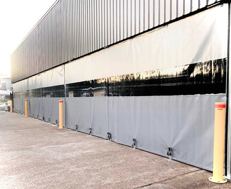 Premier Door Systems was able to custom build PremSCREEN, a sliding curtain system for containment of the facility’s storage area. Spanning over a total of 35 metres, the PremSCREEN curtain was constructed of 900gsm ploy weave tear-stop PVC material, and featured a clear window section incorporated into the panels. Each section was fitted to a top sliding rail and anchored to the ground through the use of specially designed ratchets and surface mounted anchor points. The panels were also individually connected with velcro ends that had been applied to the curtain edges.